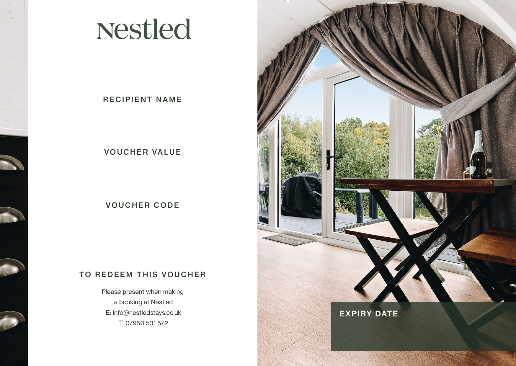 Give the gift of Nestled with a gift voucher. The perfect way to treat someone special to an unforgettable stay.
