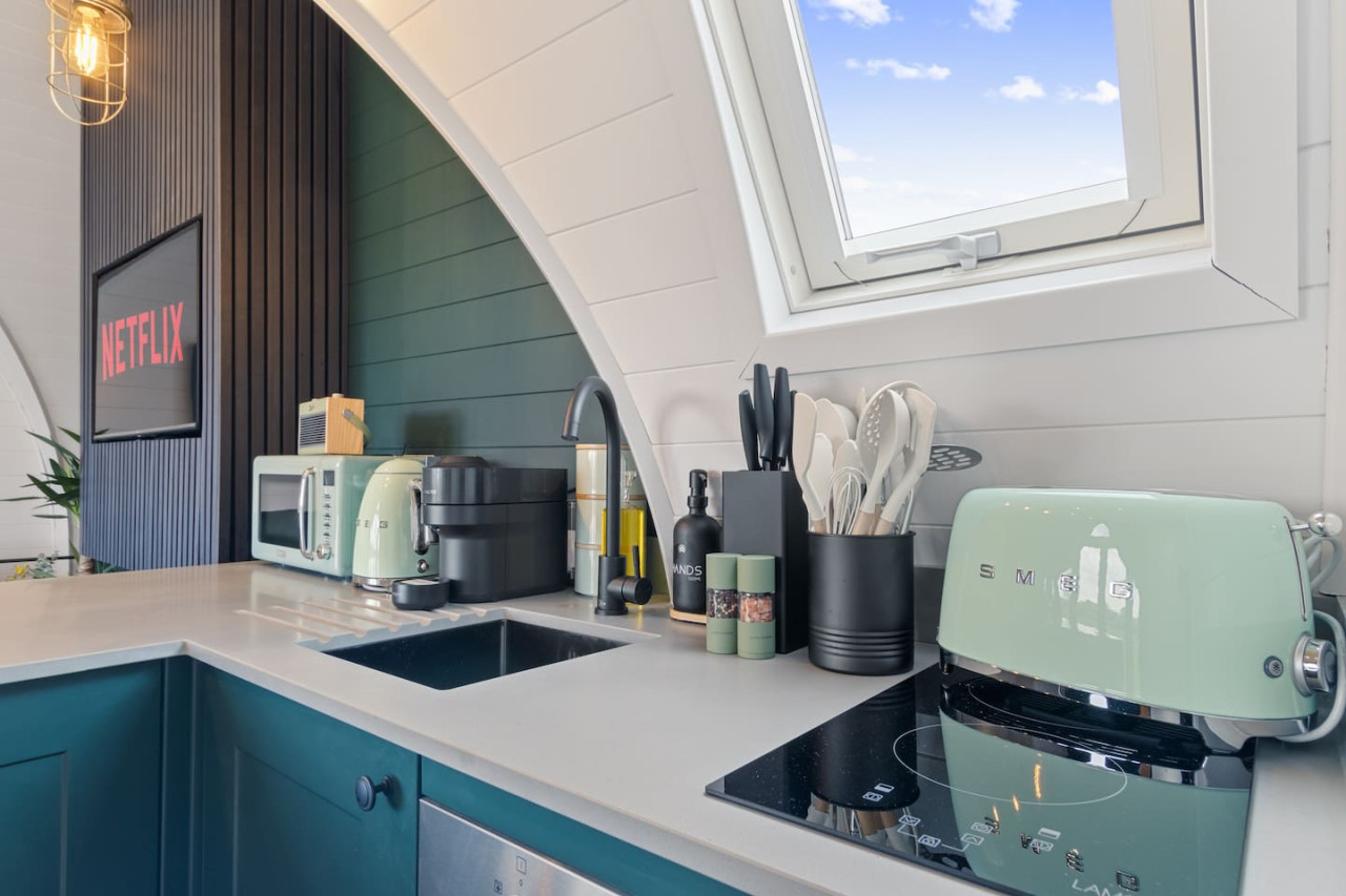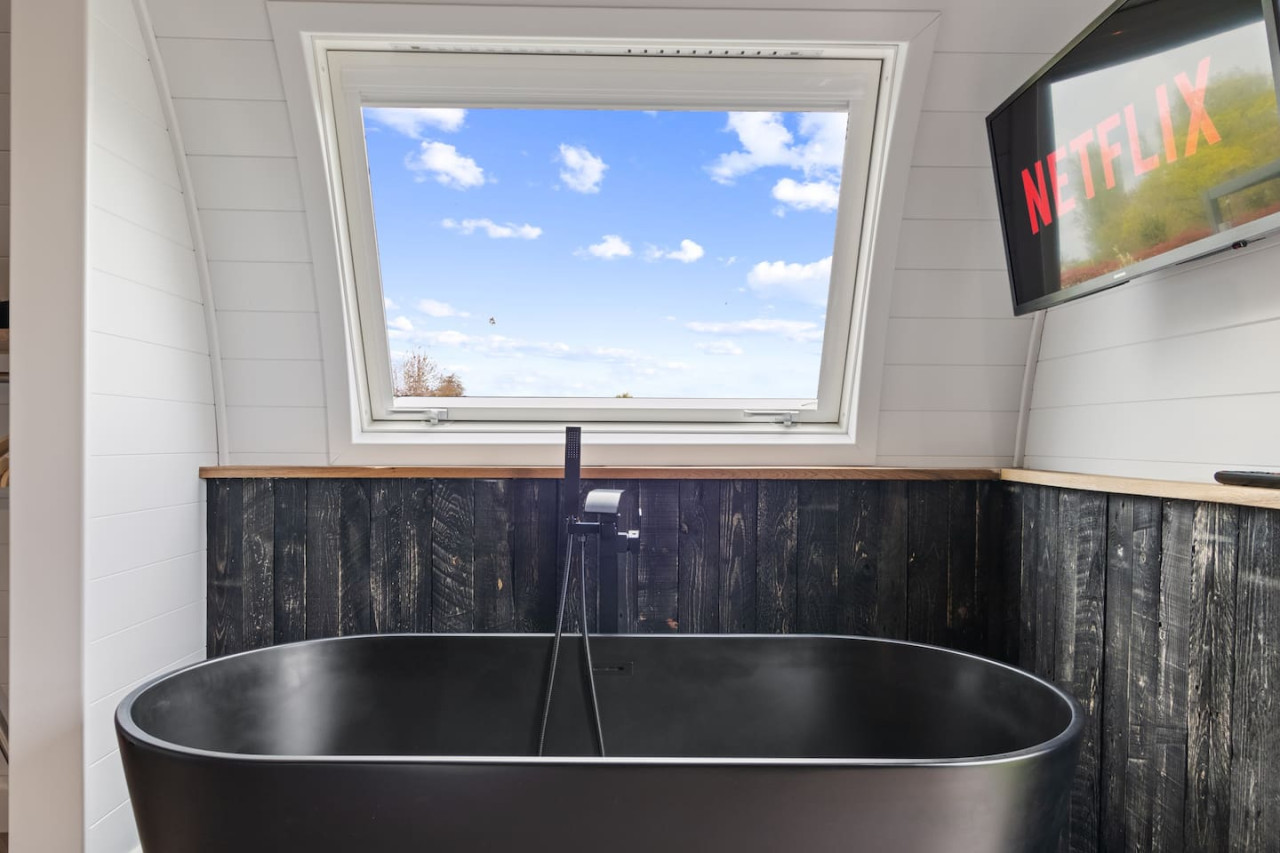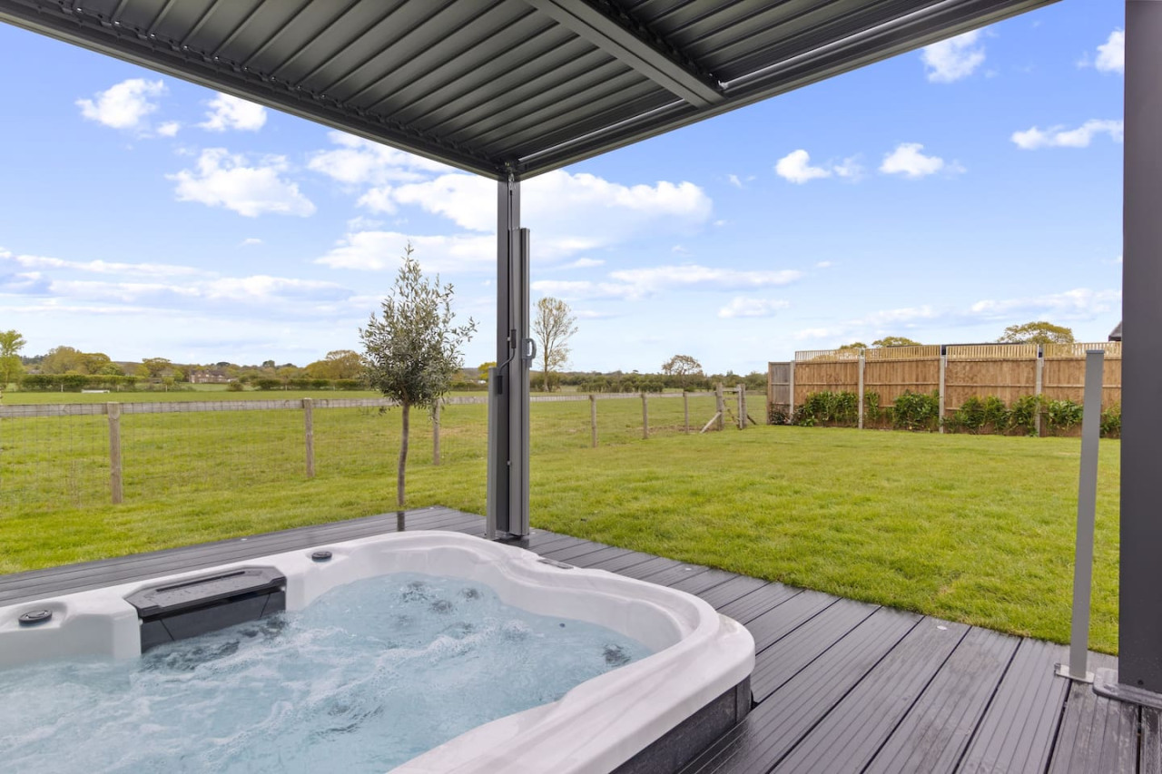 Experience the charm of The Barn House, a newly crafted opulent pod accommodating up to 6 guests. Nestled on a Farm in the Sussex countryside, surrounded by farm animals, it’s an ideal haven for families, friends, and even furry companions. Delight in a spacious private garden, hot tub, a scenic veranda boasting breathtaking views, and a captivating on-site fishing lake. This stylish place to stay is perfect for group trips.