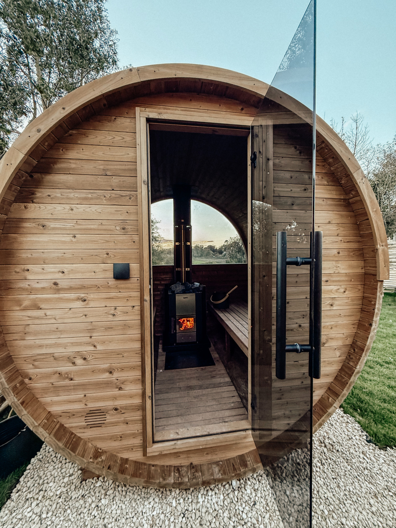 Outside, unwind in your private Scandinavian-style hot tub, outdoor shower, or wood-fired sauna, then gather around the firepit as the stars come out. Settle in for an unforgettable night under the stars, watching a film on your 100-inch outdoor cinema screen while staying warm and cosy by the heater.