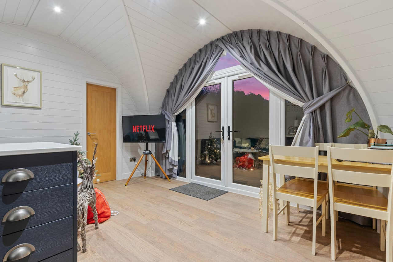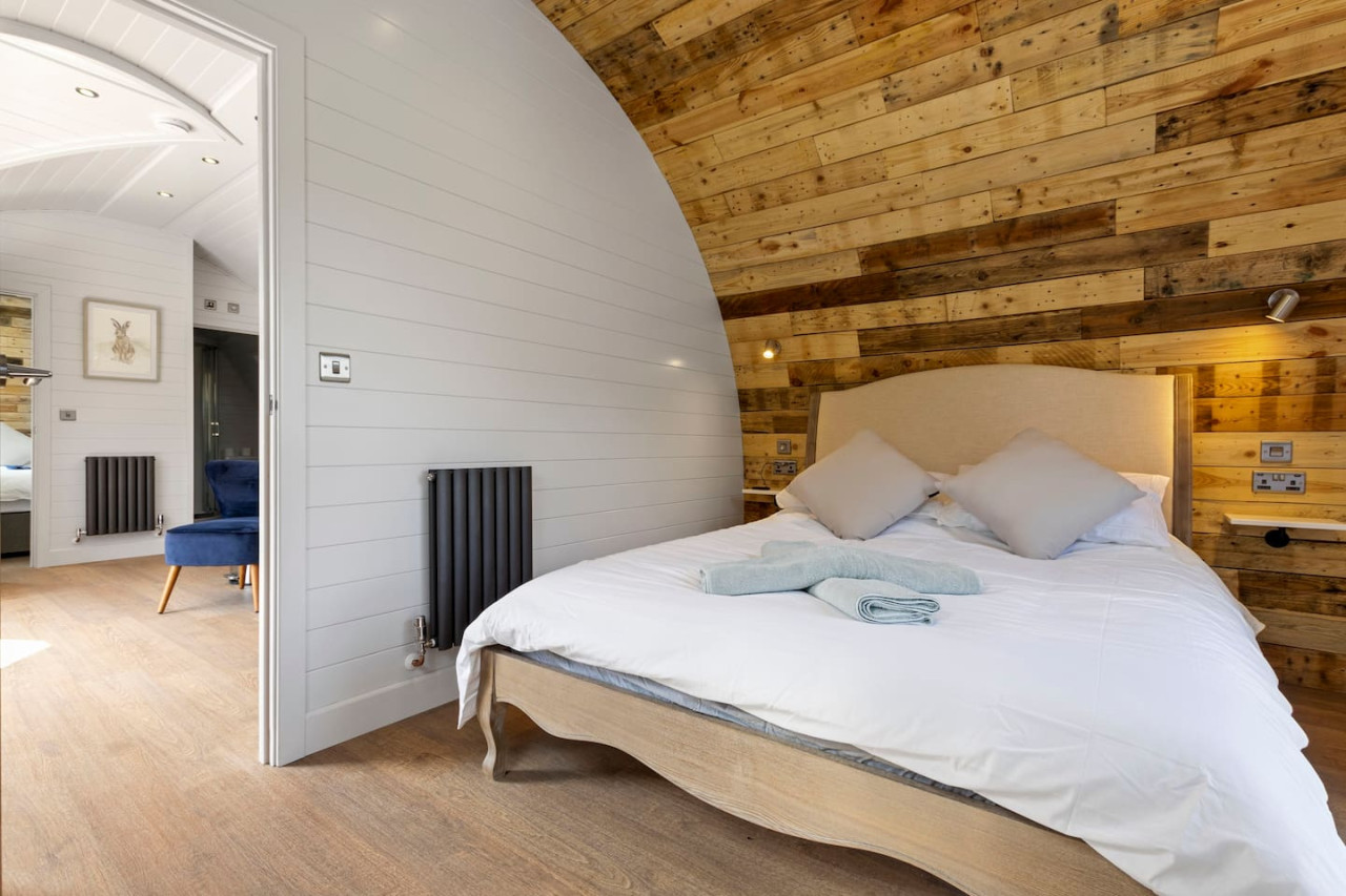 Experience the enchantment of The Lake House, an exquisitely designed luxury pod that presents breathtaking vistas of a scenic lake & a private hot tub. Ideal for a romantic escape or a memorable gathering with friends, this cabin is reserved exclusively for adults & comfortably accommodates up to four individuals.
